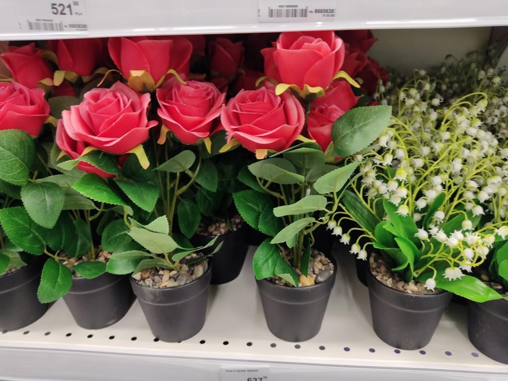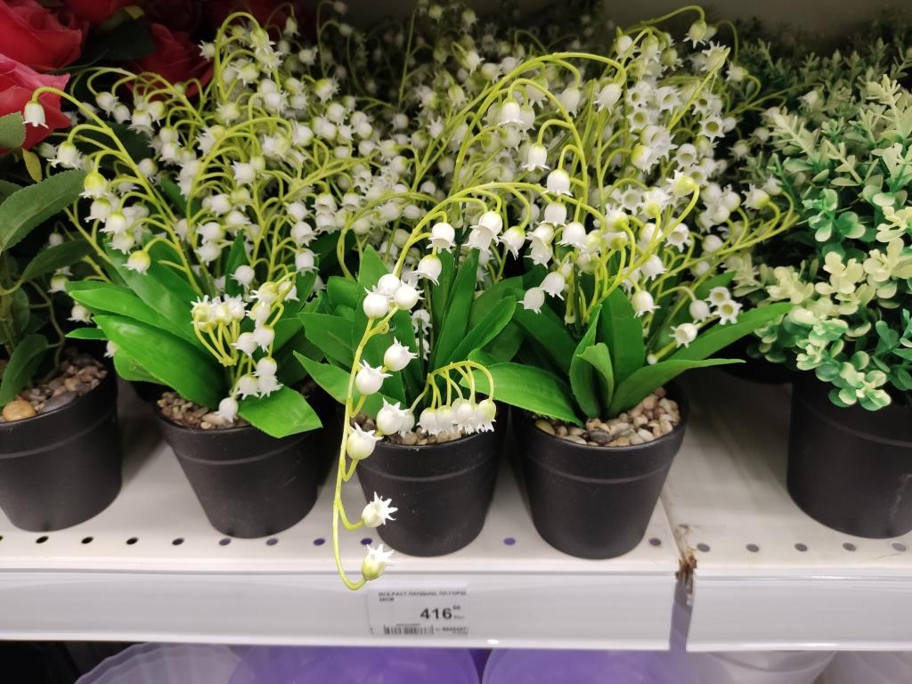 Для сравнения покажу цены на горшочек с имитацией ландышей и розы…