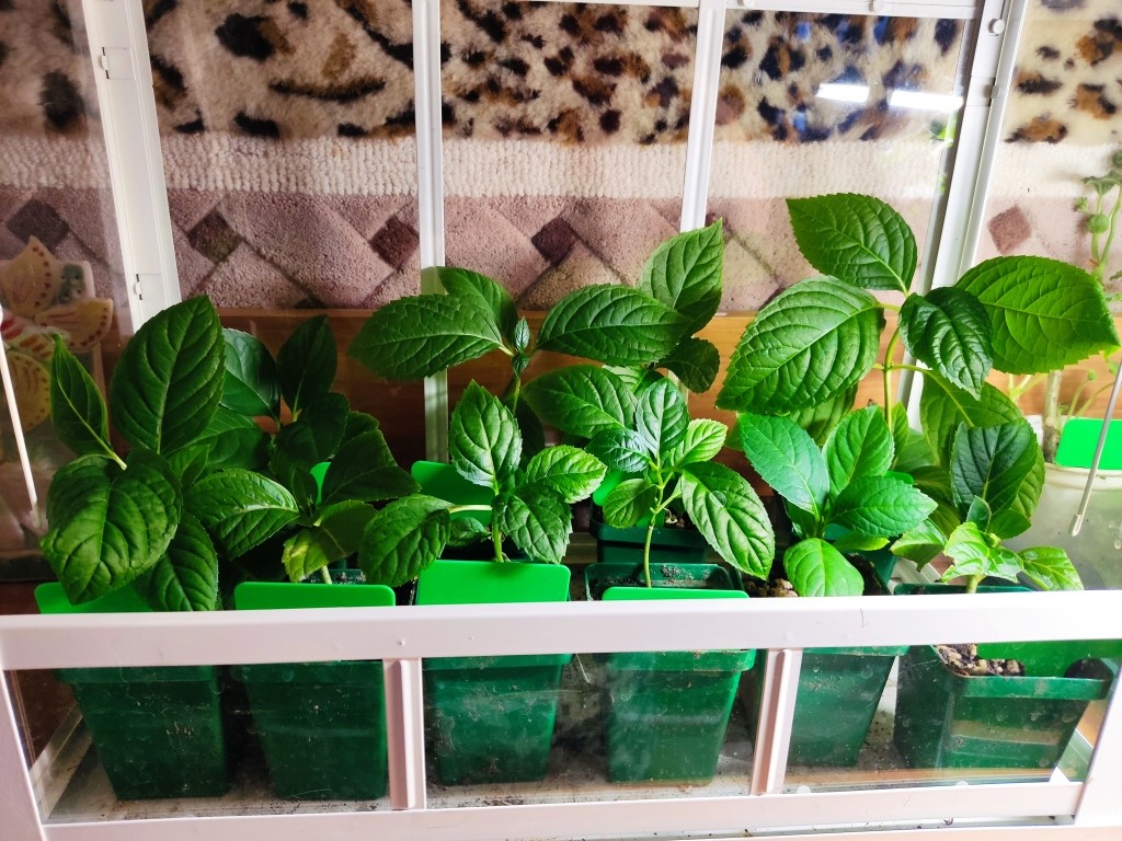 Летом я вам показывала, как черенковать гортензии. И у меня прижились 10 черенков двух сортов.