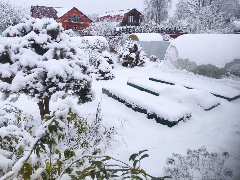 И на последнем фото видно, что за стенами теплицы идет мокрый снег с дождем… И с ветром…