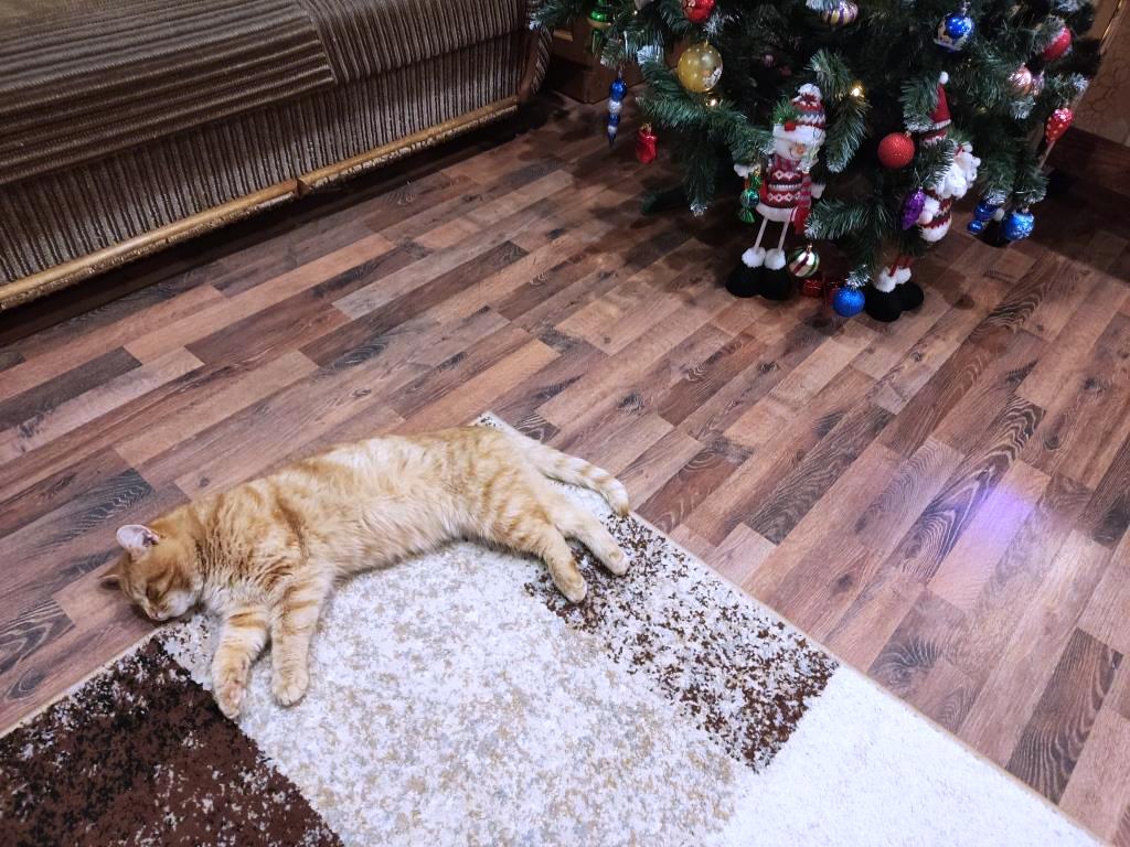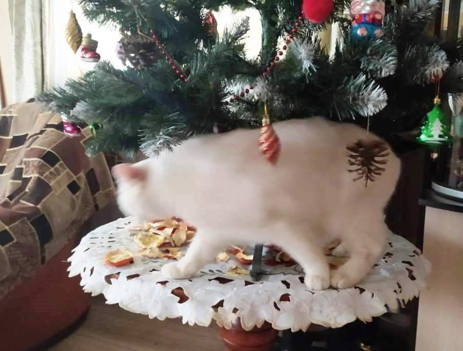 Наверное мне не стоило упоминать, что мы под ёлкой от котов раскладываем свежие апельсиновые и мандариновые корочки.