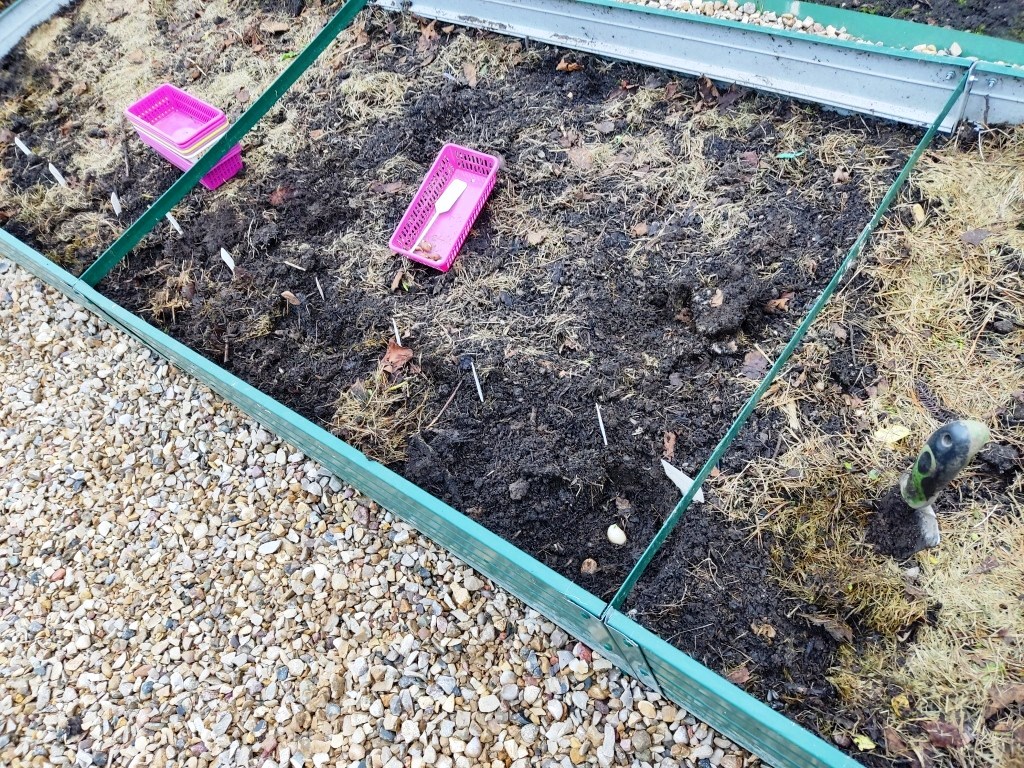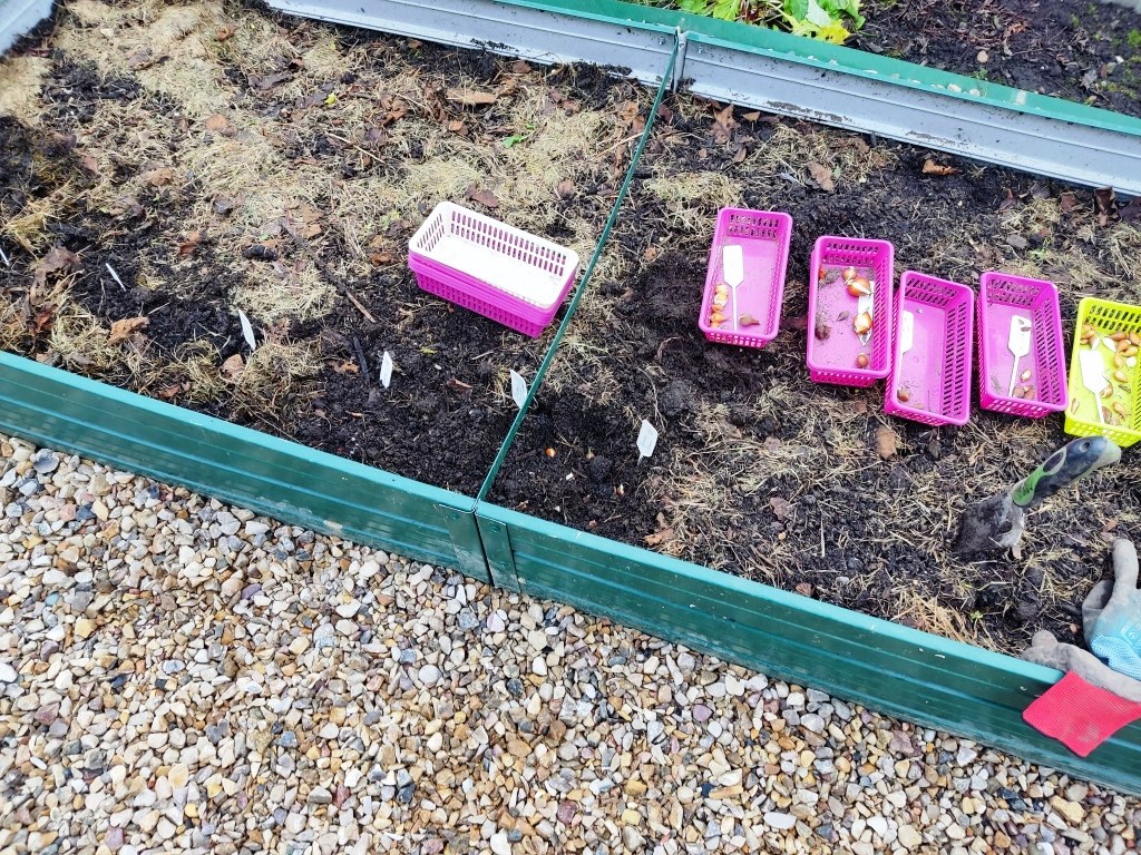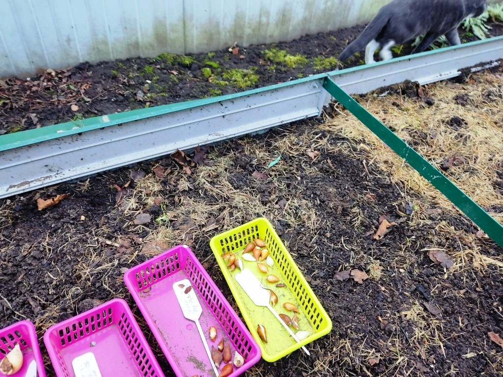 И в одну из небольших оттепелей я решила посадить остатки деток тюльпанов. На грядку, по краешку.