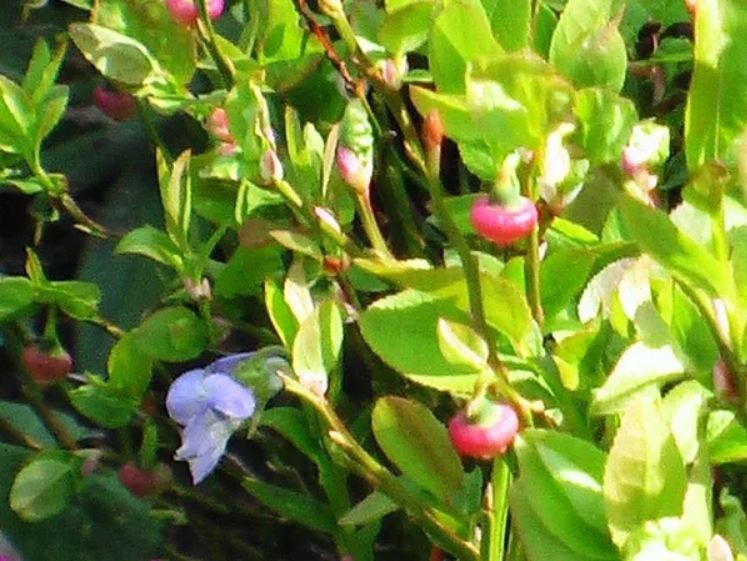Фиалка внутри куста черники и чуть выше листья ятрышника