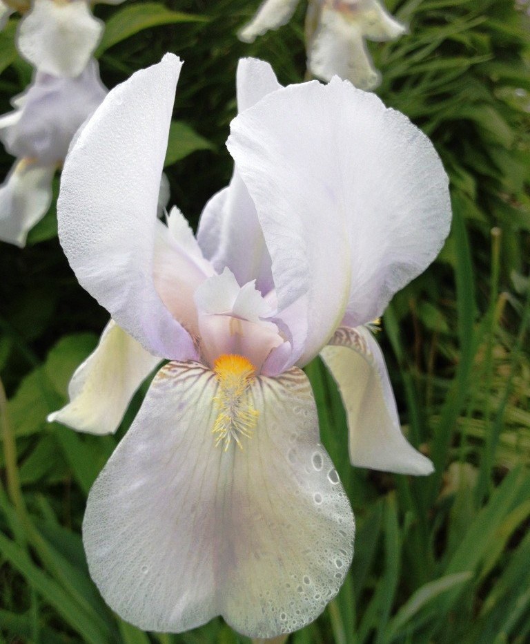 Ирис Вайт. Считается белым, что почти соответствует реальности в некоторые годы и при определенном освещении. Но чаще проступает немного сиреневого цвета