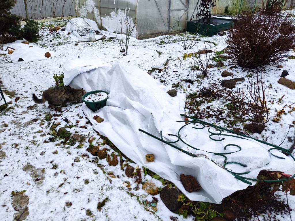 А напоследок дам вам крошечное задание. Угадайте, роза на нижнем фото: сколько и каких потребовалось укрывных чехлов, чтобы укрыть её полностью?