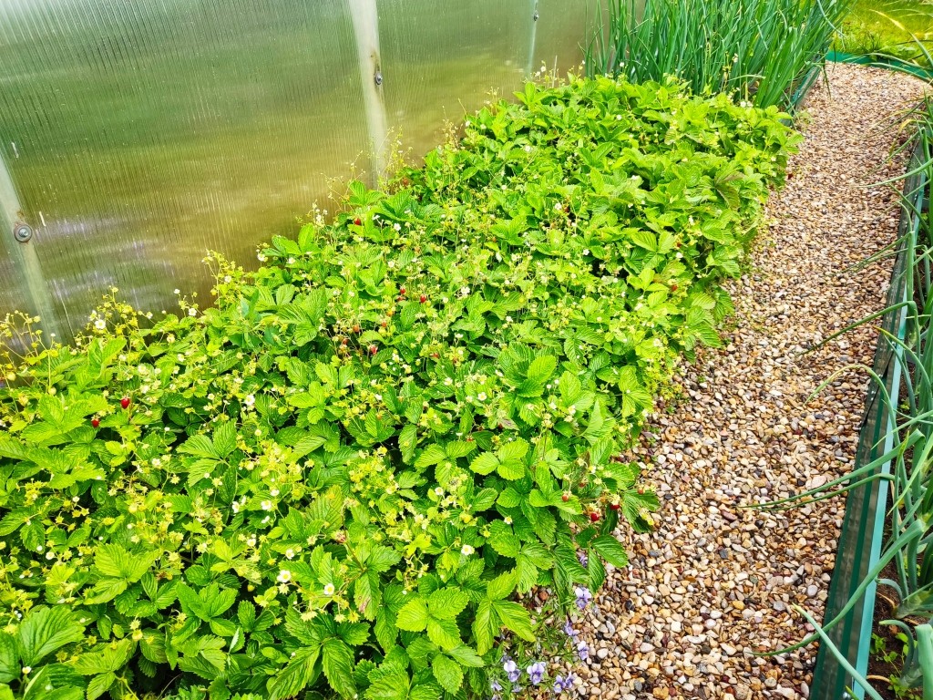 На грядке, где по плану должна была расти только белая — стала появляться и красная земляника! Хотя я её там не сажала. И уж тем более не сеяла!