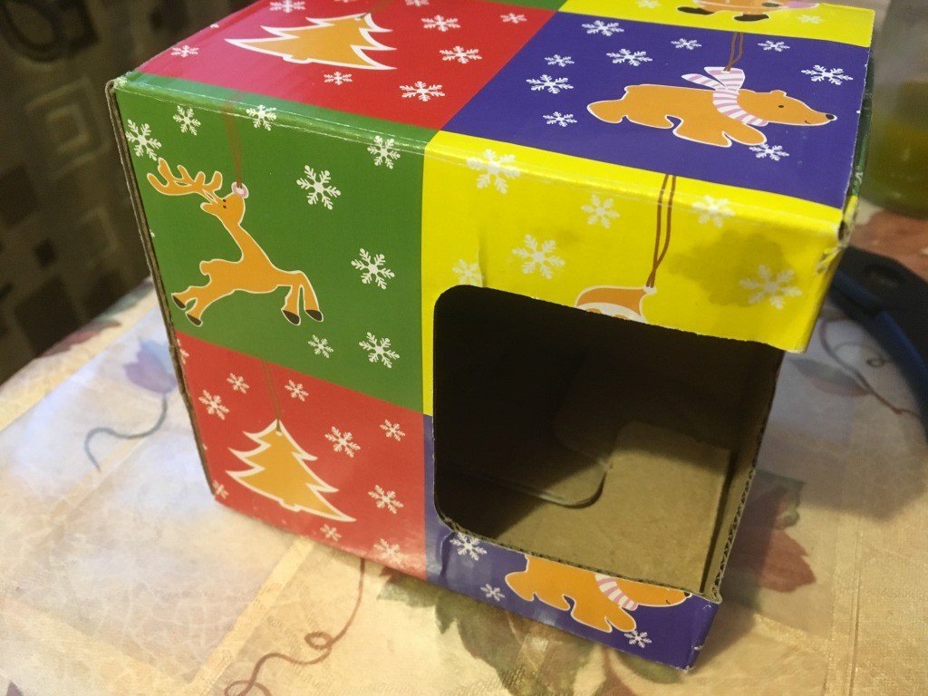 Первый вариант — повесить на елку в саду как украшение. Но… Там же снег, потом оттепель… И картон просто размякнет.