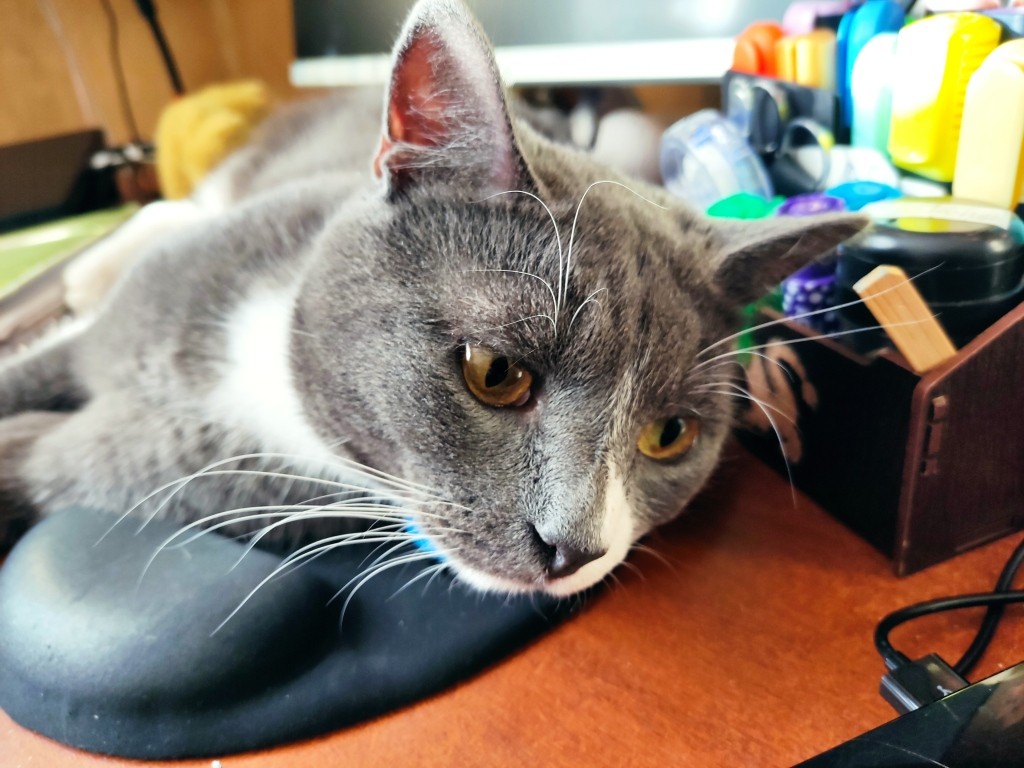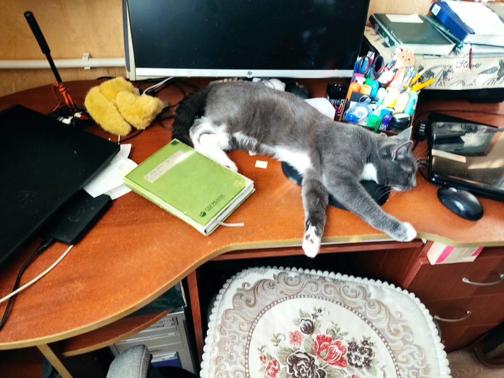 Я запрыгнул на стол, деликатно отодвинул её руку носом и улегся прямо на главный инструмент – на этот мягкий коврик для мышки. Идеальное место.