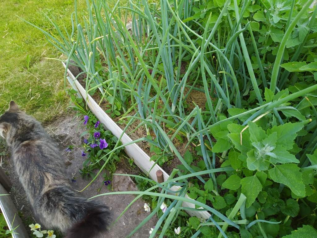 И кстати говоря, летом в жару мы зелень лука уже не ценим. Вот нашла летнее фото грядки с луком, где шикарное перо питает репку: