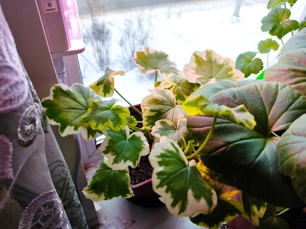 Впервые моя герань зимой имеет персональную подсветку на весь темный период года