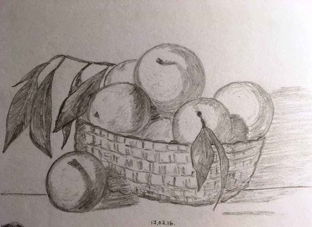 Хотя начинала я рисовать именно с простого карандаша. Вот очень старая работа с персиками. Прошло 10 лет с тех пор: