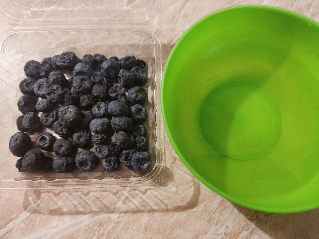 В магазине осенью купила упаковку заморской голубики. Поставила в холодильник.