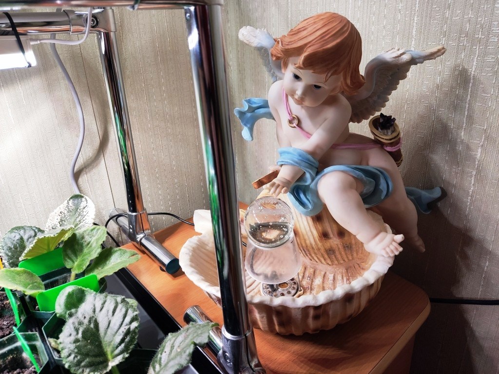 Приготовила увлажнитель воздуха. Он на фото ниже. В «ракушку» наливается вода, включается в сеть — и начинается образование пара над водой. Снизу есть подсветка. Позднее покажу в действии.
