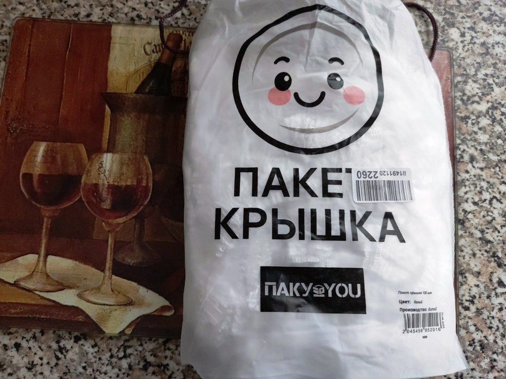 Появились такие вот пакеты-крышки. В наборах по 100 штук, стоят всего 100 рублей за набор. Обычно ими удобно укрывать тарелки с остатками еды в холодильнике.