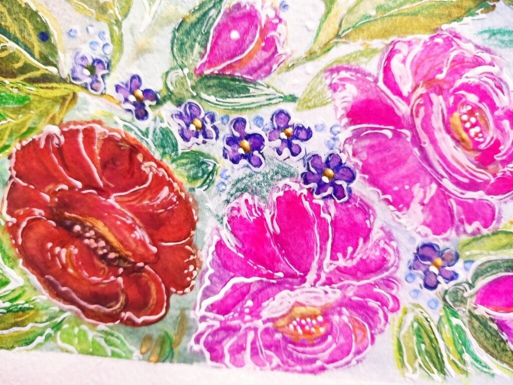 Благодаря ярко-розовой краске я и смогла нарисовать открытку с розами