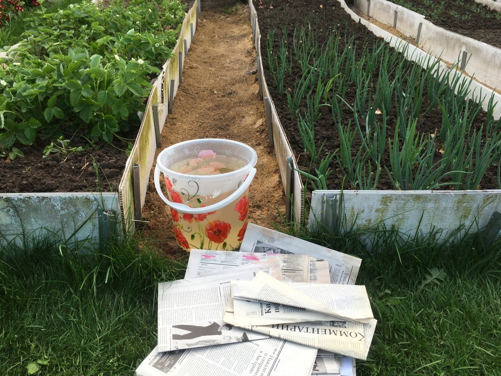 В своё время меня сильно выручили дорожки из газет. На участке я их делала регулярно между грядками и написала про них несколько подробных статей.