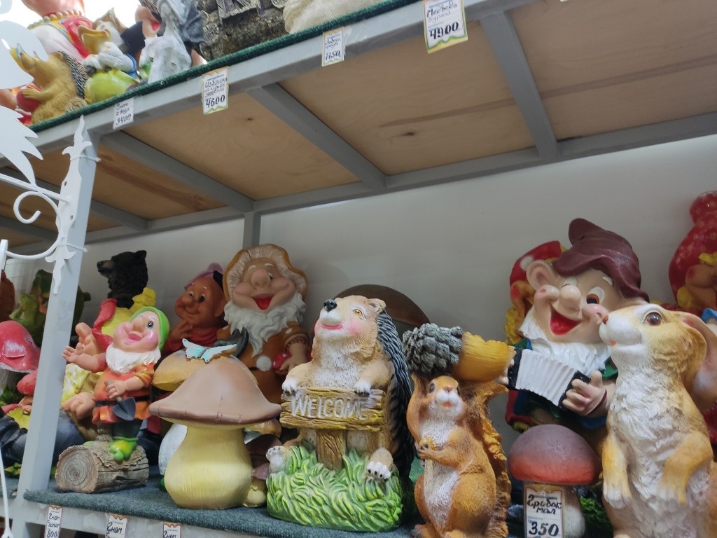 В отдела садовых фигурок и скульптур я постояла ради интереса. Ничего покупать там не собиралась. Но посмотреть на ассортимент и что люди берут…