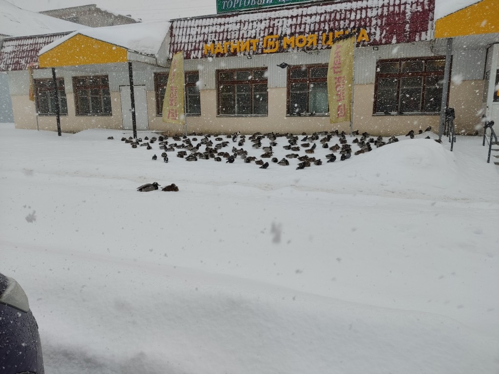 Решили проехать по магазинам. А там мерзнут утки на снегу
