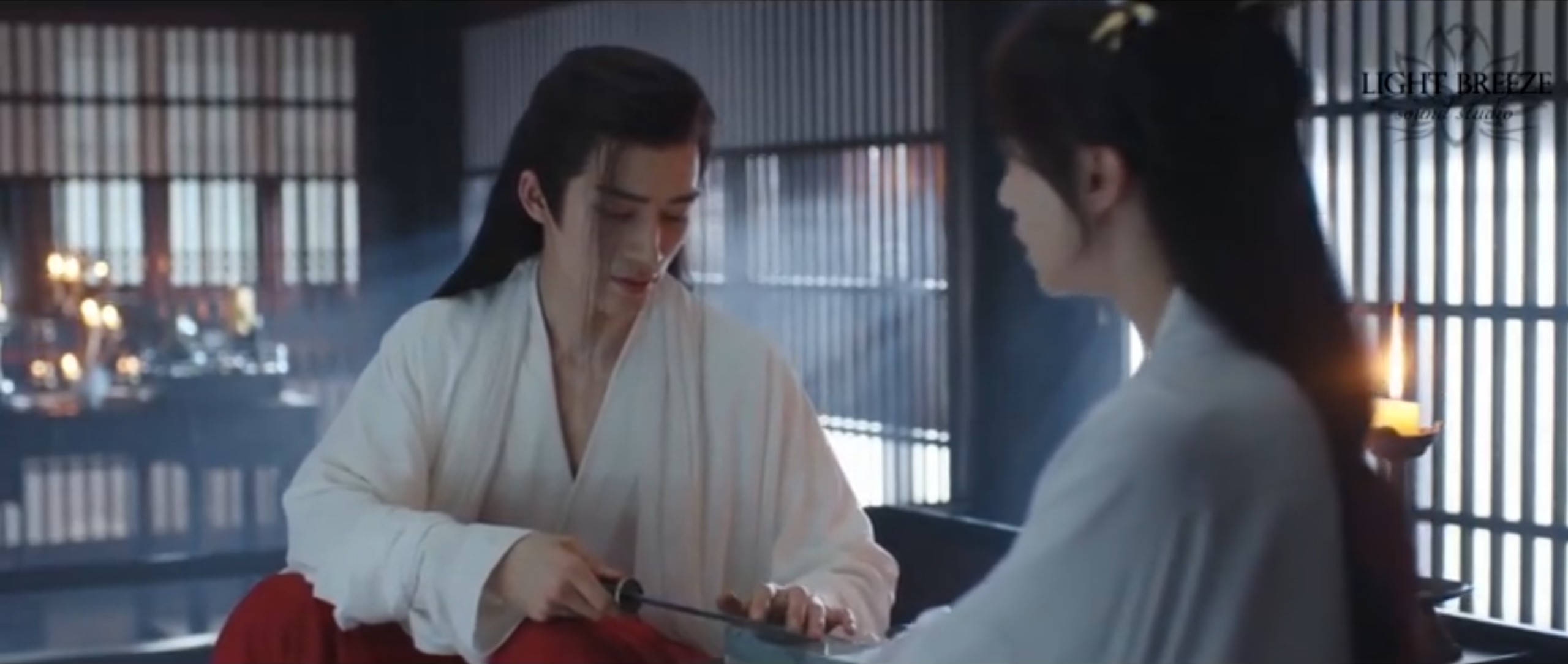 Герой уходит сражаться. На прощание ему возлюбленная дарит белый нефритовый кулон. Берет с него клятвенное обещание, что он вернется цел и невредим.