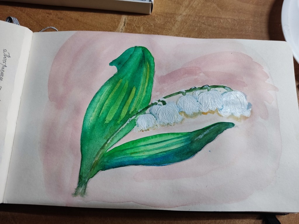 В этот день я нарисовала ландыш и желуди. Покажу, что у меня получилось и что не получилось. И почему получилось, и почему что-то не получилось…