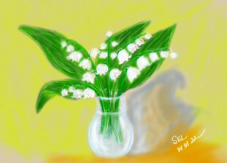 Сначала я решила, что позднее перерисую ландыши. И нарисовала второй рисунок, но уже не из голову, а по образцу.
