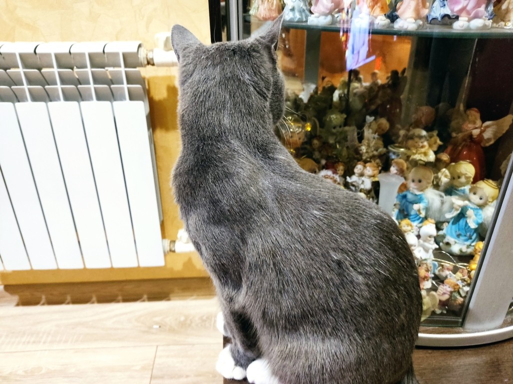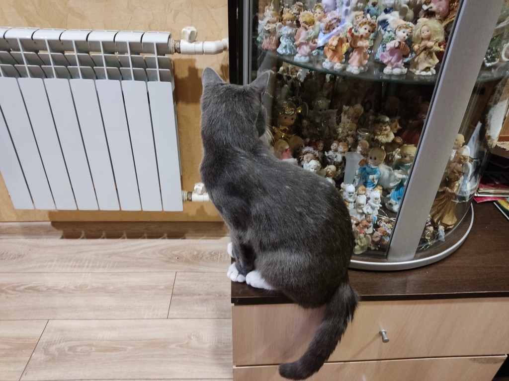 Сначала я решила, что он там постоянно рассматриваем мою коллекцию крылатых статуэток.