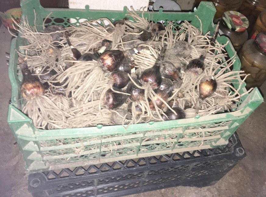 Спустя несколько лет я начала выкапывать луковицы ящиками (фото выше).