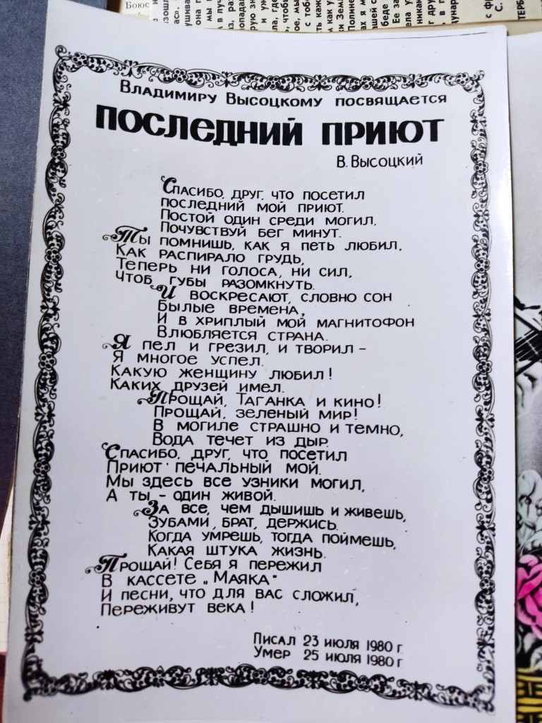 Однако, желавшие заработать даже на смерти поэта, были и останутся всегда. Поэтому и продавались такие фотографии Владимира Семеновича, на которых на обороте были стихи «Последний приют».