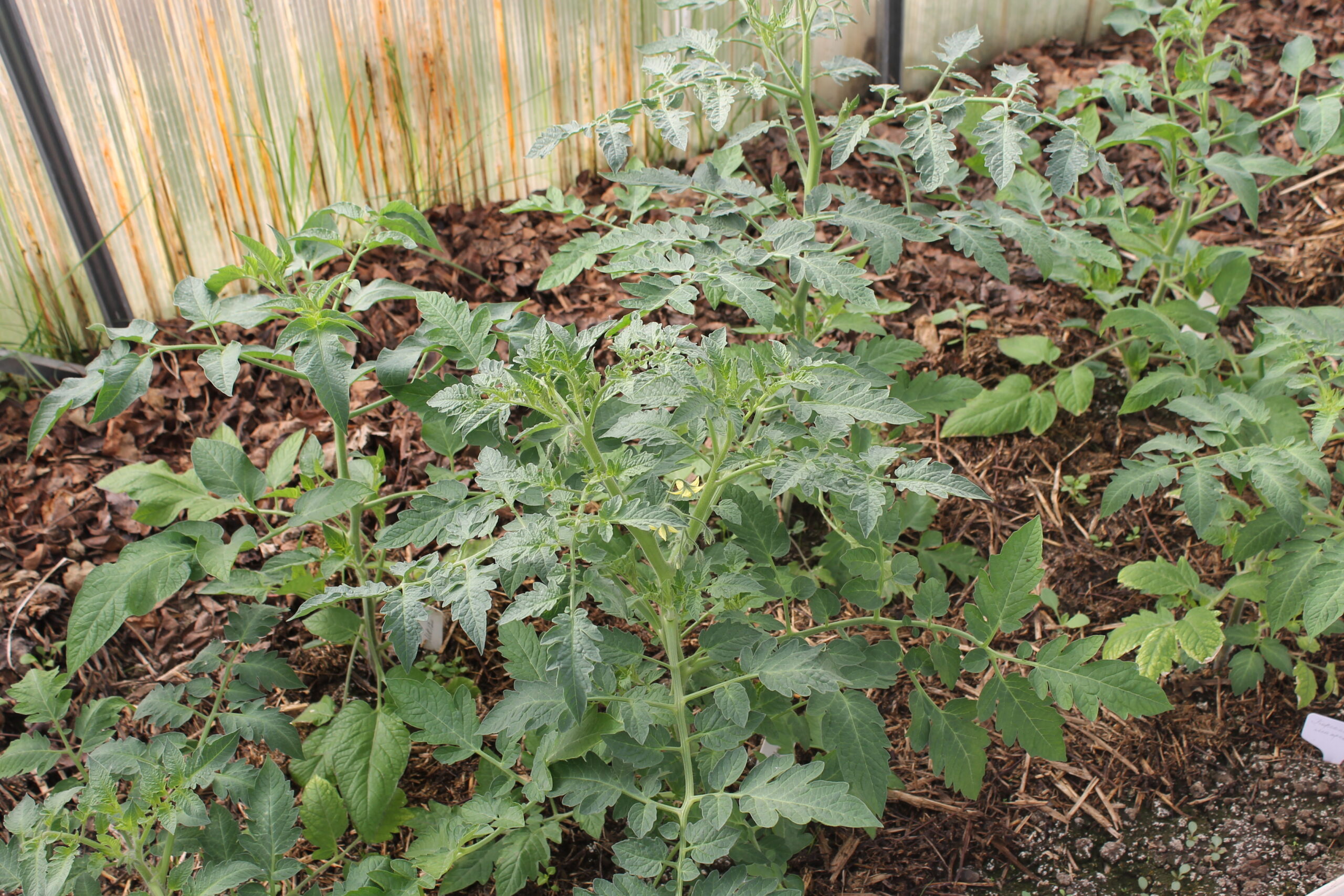 Трава прорастает внутрь теплицы. Корни пролезли под землёй, и теперь трава растёт по кромке теплицы.
