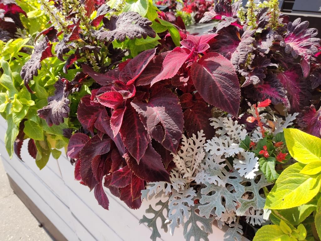 В комплекте с ними по соседству росли сальвия и цинерария. Но колеусы явно доминировали.