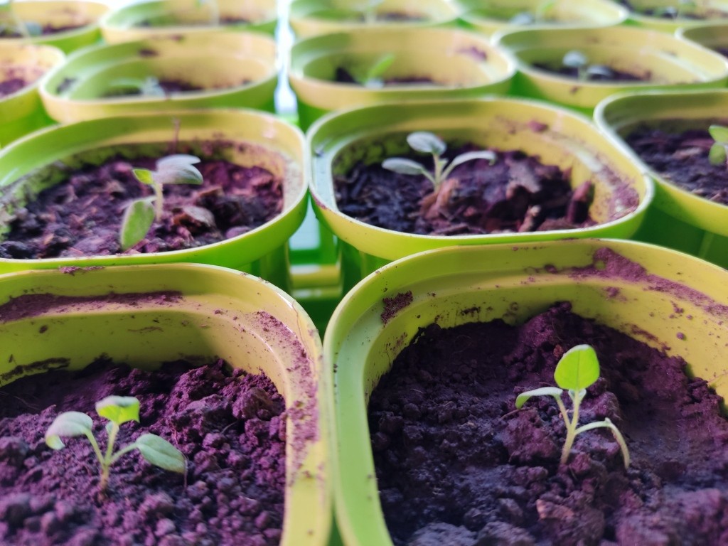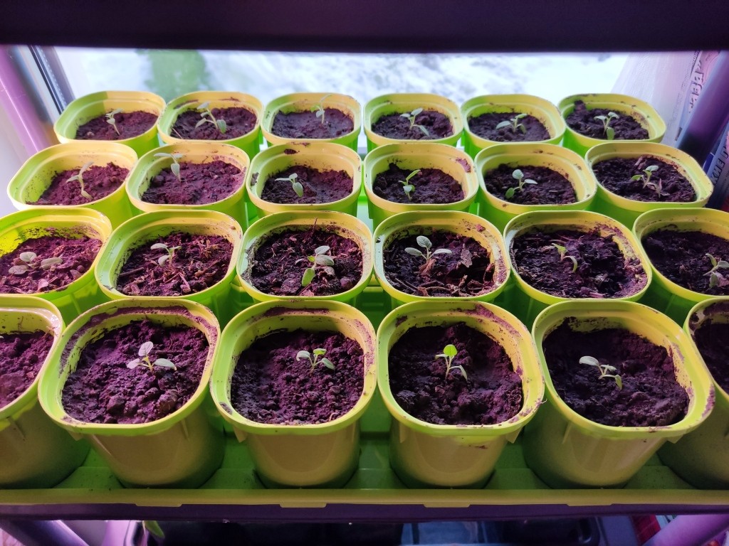 Раз взошли не все семена, то стоит пересадить сеянцы в более мелкую и компактную тару.
