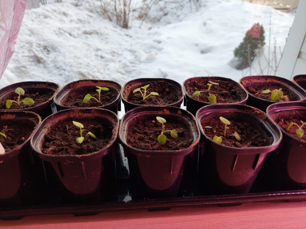 Думаю, что этого на данном этапе будет вполне достаточно. Ведь даже в таких маленьких ячейках проростки эустомы пока смотрятся хрупкими и крошечными.