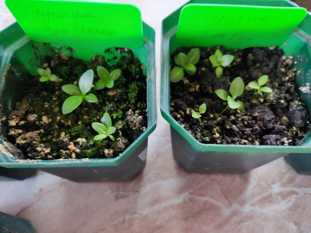 Да. Физалис сначала выглядит малышом, если сравнивать с перцами или помидорами в том же «возрасте». И тут он здорово похож на сеянцы эустомы, о которой речь ниже.