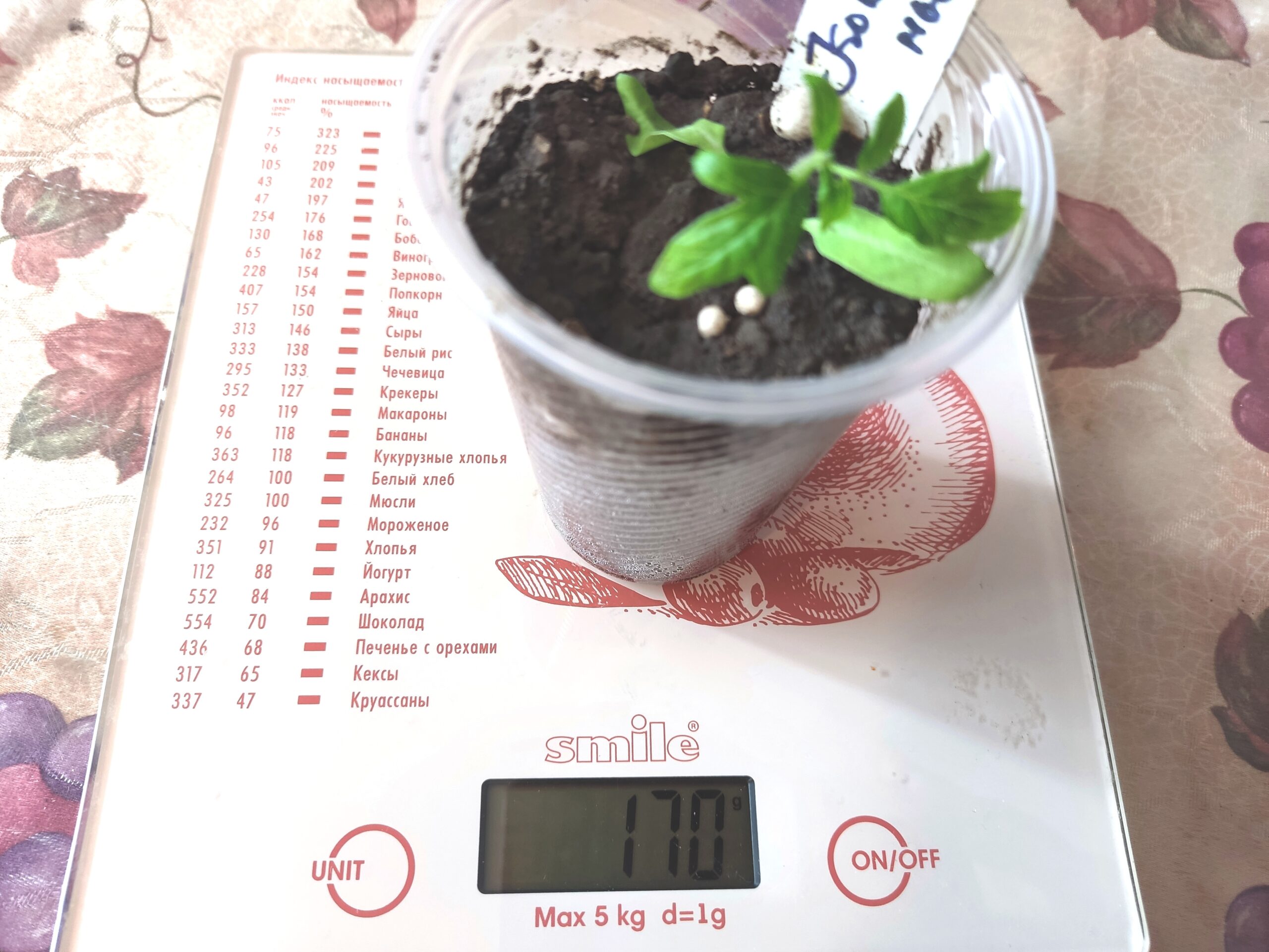 На моем фото (выше) вес одного стаканчика в момент максимальной тяжести после полива. Составляет примерно 170 гр.