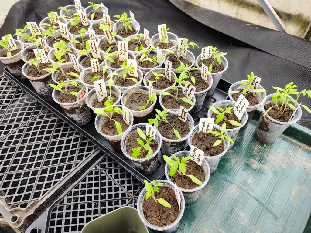 Сначала они у меня были посеяны по сортам в отдельные горшочки. Потом я их пикировала от отдельным горшкам и стаканчикам.