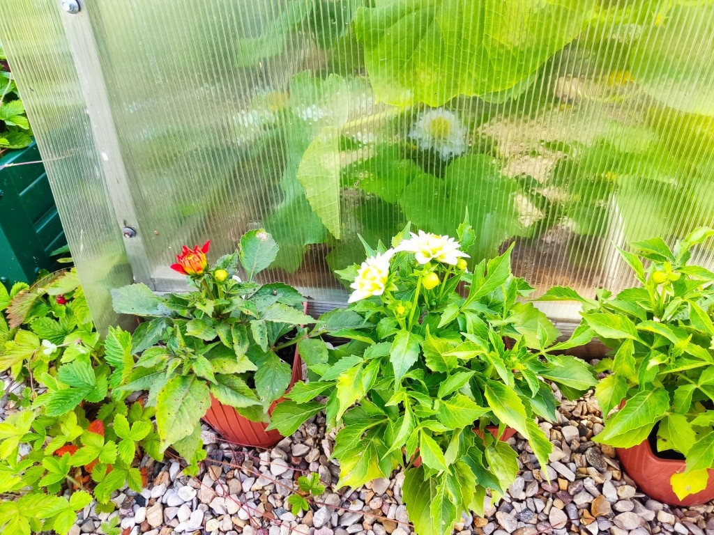 А как известно, нет ничего более постоянного, чем временное. И в итоге, низкорослые георгины я так и оставила на всё лето в тех самых горшках. Хотя они были явно этим обстоятельством недовольны.