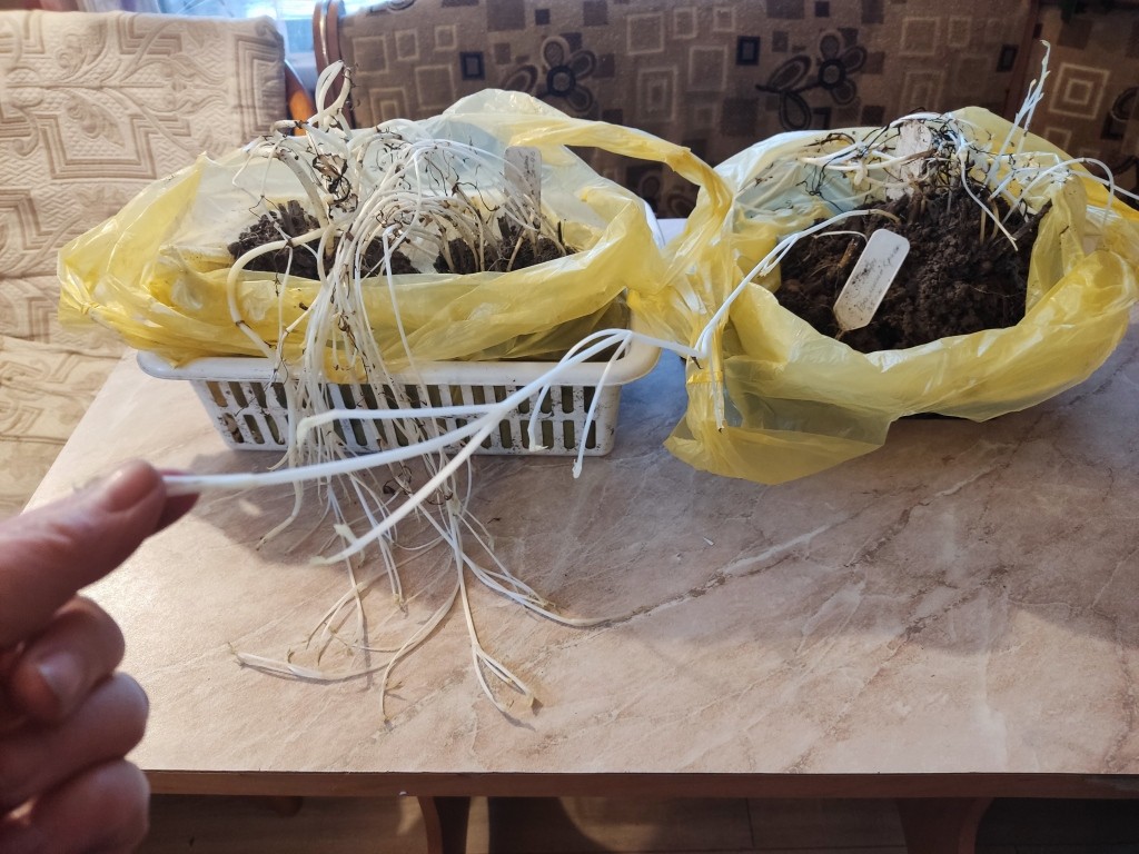 И на зиму я их выкопала в пакеты и опустила в подпол.