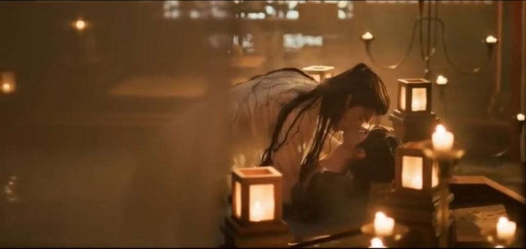 А буквально тем же утром он принимает наказание от своего дяди. Дядя его воспитал и вырастил. Поэтому, генерал (Чжан Линхэ) послушно встает на колени и позволяет себя отлупить хлыстом по спине.