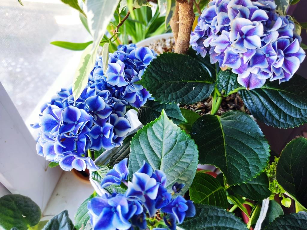На фото выше, которое сделано в марте прошлого года, она у меня стоит на подоконнике и цветет голубыми шапками.