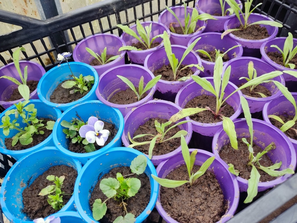 И я их решила сохранить. Выкопала и рассадила по фиолетовым (васильковым) стаканчикам. И теперь они растут в теплице. Как путные.