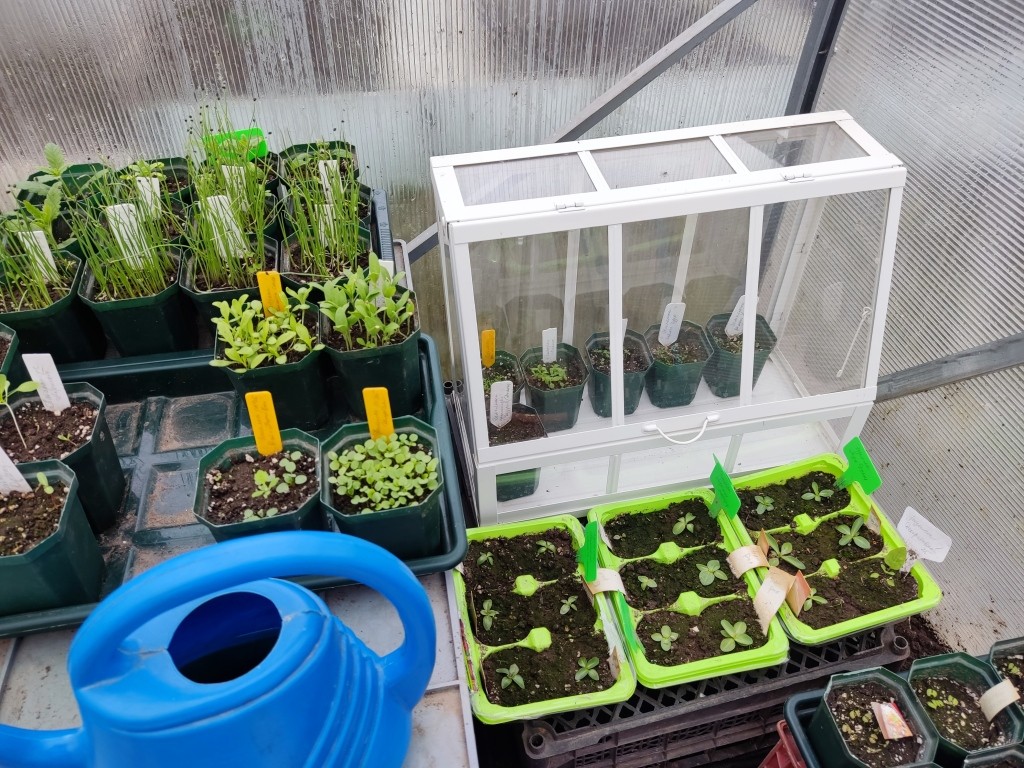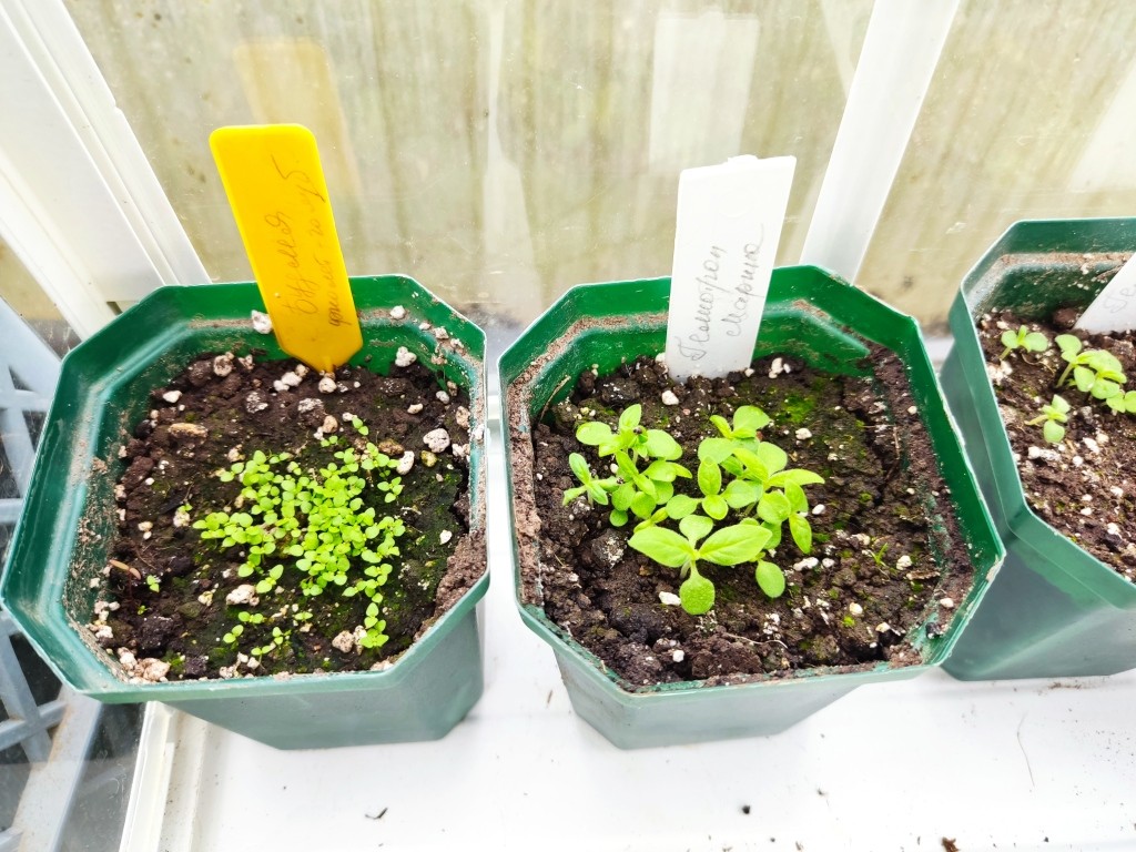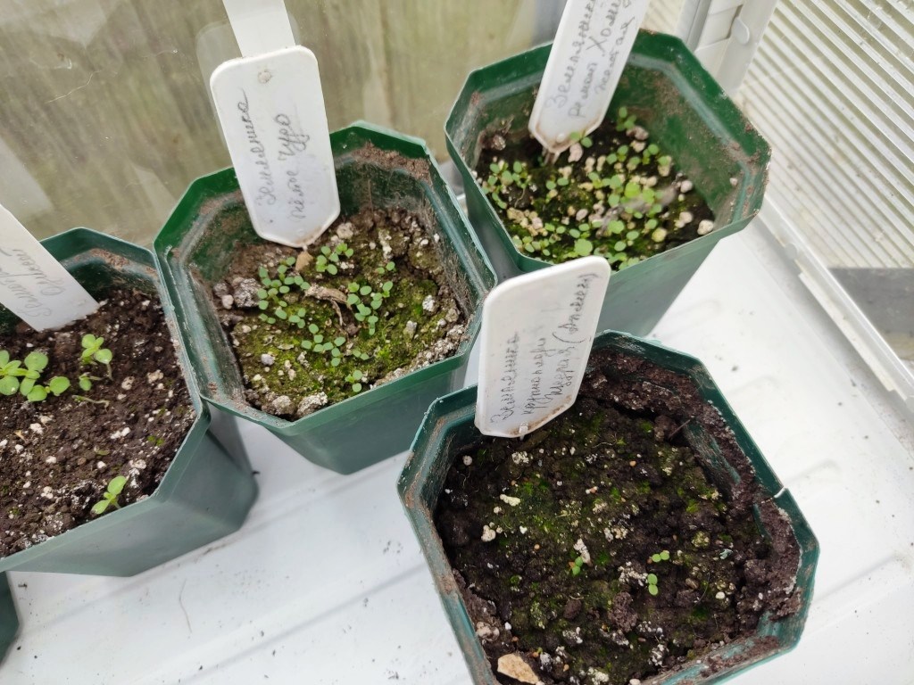 А на этот раз я там поставила те посевы, которые мне хочется непременно сохранить. Ведь в такой махонькой, переносной и удобной теплице стараюсь держать что-то, на мой взгляд, наиболее ценное.