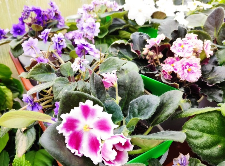 Только мне пришло в этом году в голову, что нужно вынести фиалки из теплого помещения и разместить в теплице.