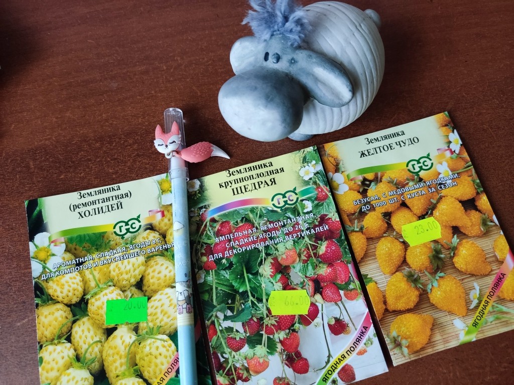 Ну и покажу вам какую я посеяла землянику. Три сорта: Холидей, Желтое чудо, Щедрая.