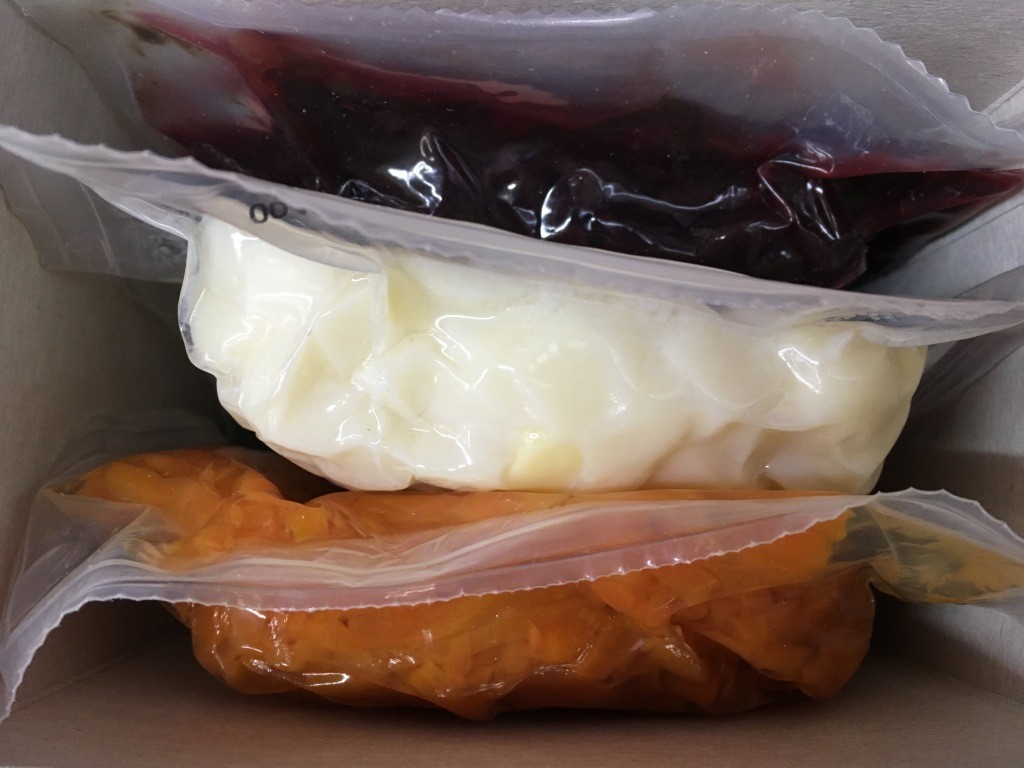 Из Беларуси в центр нашей страны (Тверская область). Внутри пакеты довольно невзрачного вида, слипшиеся, порезанные кубиками картошка, натертая морковка, свекла…