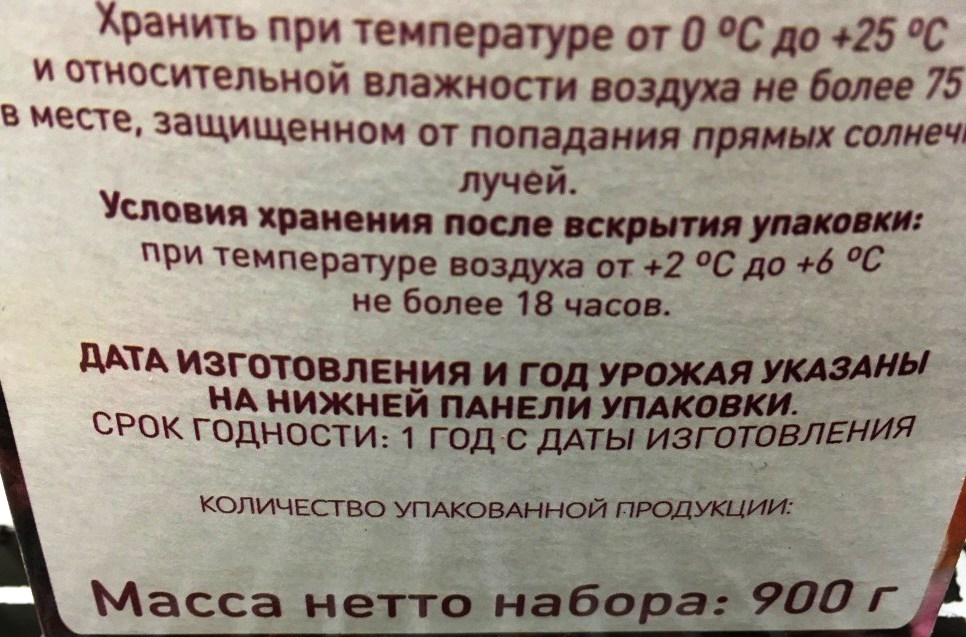 Год хранения. Вот что значит, в вакуумной упаковке. Буквально как для космонавтов. И речь про овощи… Мда…