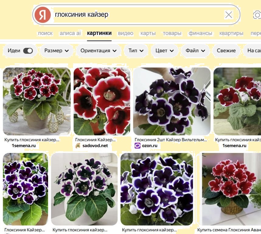 Допустим, что меня просят подсказать название неизвестной глоксинии. Хорошо… Ищу в поиске, раз читатель просит.