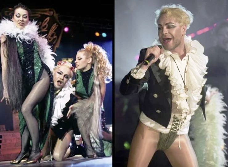 Но он не притворялся. Если бы притворялся, то хотя бы одно фото было без косметики и перьев. Но нет. Даже в домашней обстановке сидит весь в губной помаде и серьгах.