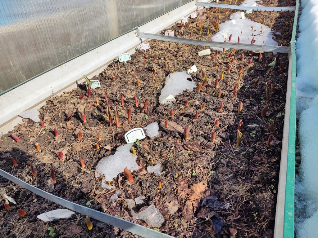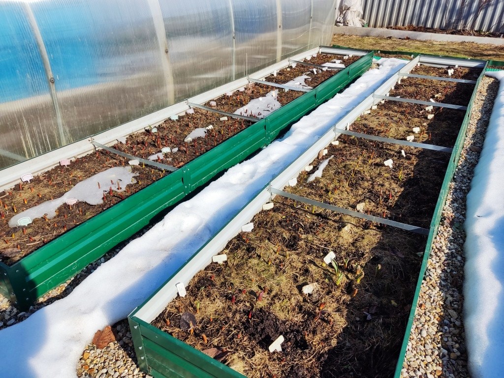 Прошлой осенью посадила две большие грядки тюльпанов. Более 100 сортов по 15 луковиц каждого. И на этот раз мыши до них не добрались. Можно было уже в начале марта выдохнуть спокойно.
