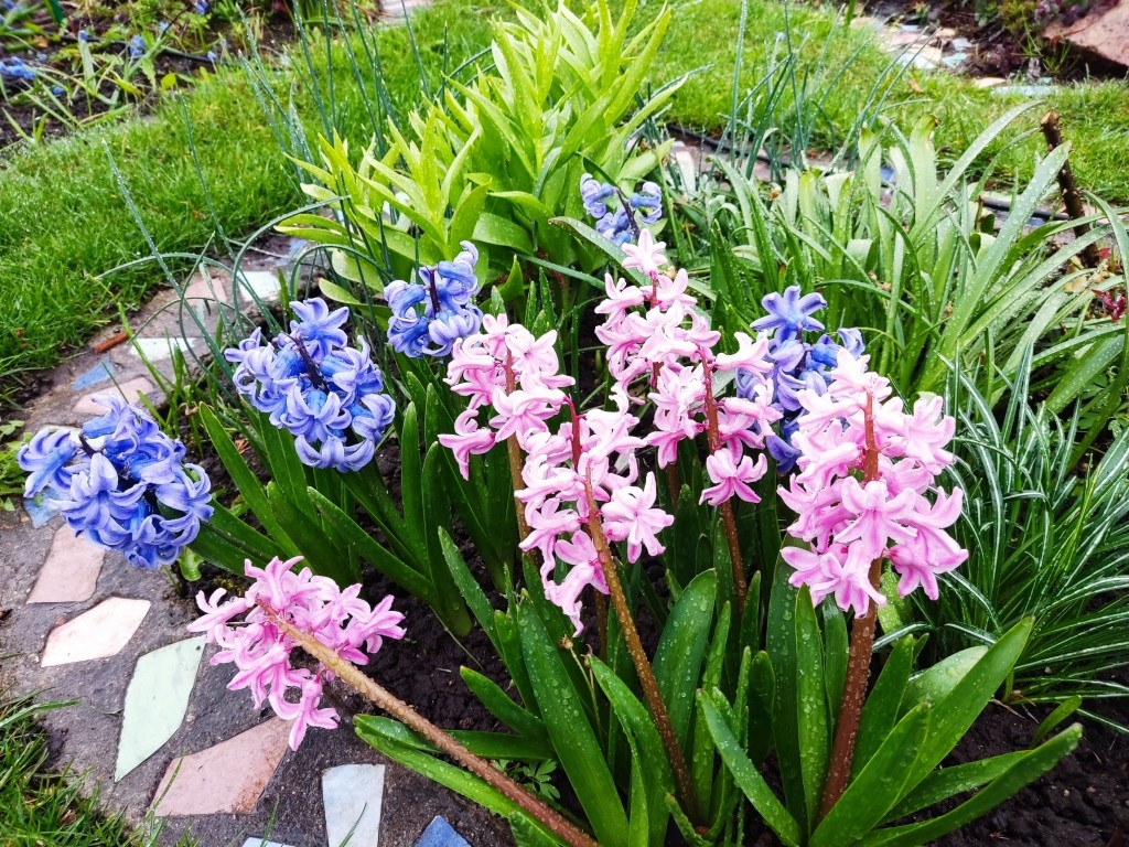 Гиацинты на холоде съежились. Если лягут, то потом могут и не приподняться.