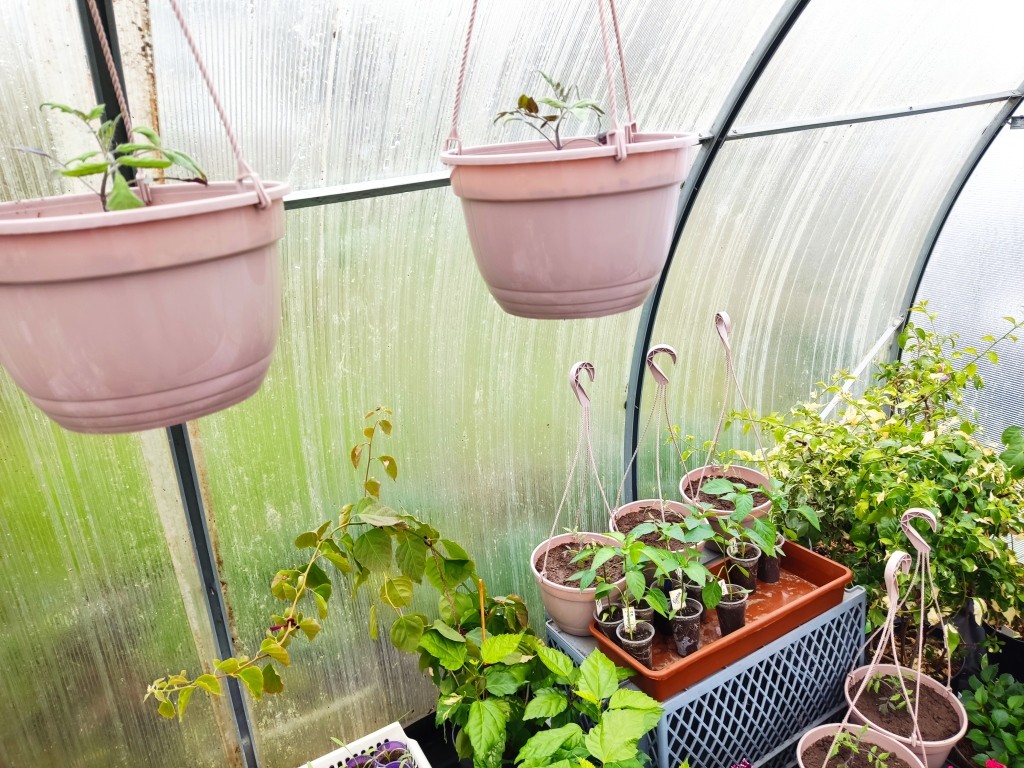 Я же вчера пол дня в теплице просидела. Пикировала лук, землянику, цветы… Посадила в кашпо ампельные помидоры…