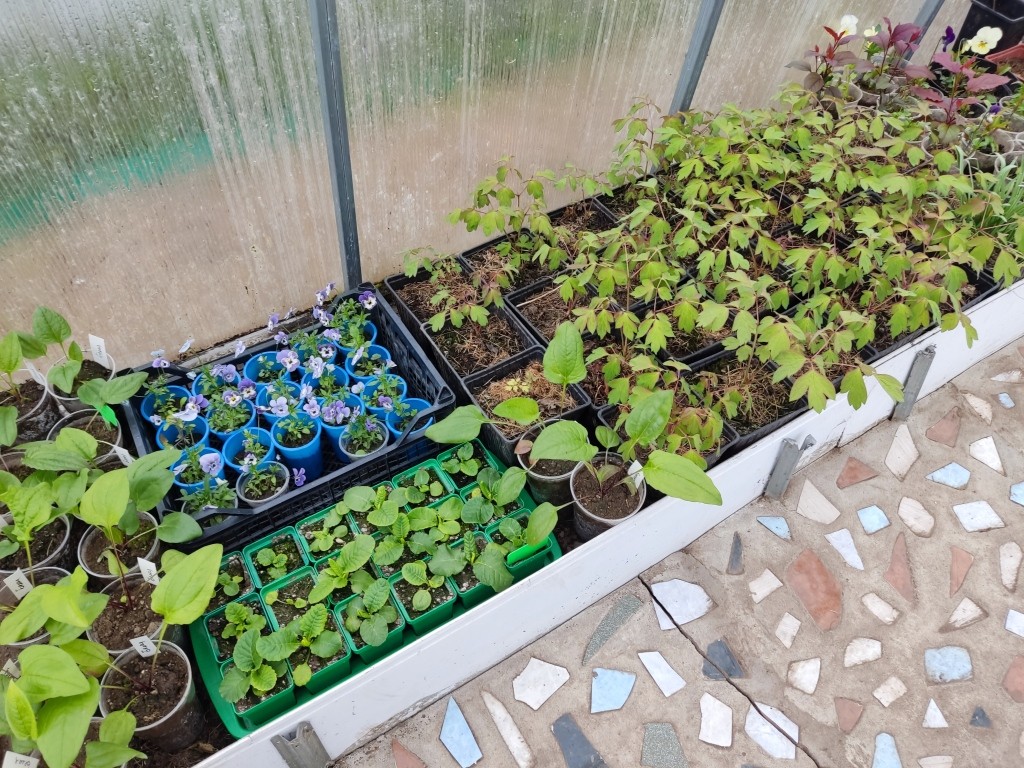 Перенесла туда фиалку рогатую. Эти стойкие цветочки могут и под снегом цвести. Так что незачем им занимать место в теплице с отоплением.